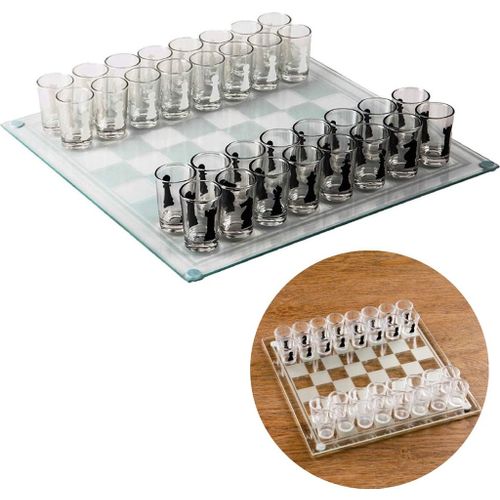 Cheqo® Schaakbord met Drankspel - Schaken - Schaak Bord - Drinkspel - Met 31 Shotglaasjes - 35x35cm
