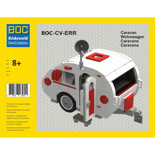 Bricksworld BOC-CV-ERR Caravan Enkelasser wit met rode accenten add-on voor LEGO® 10220 VW T1 Bus