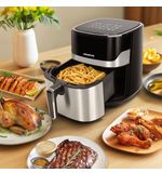 Het gebruik van de airfryer is zeer intuïtief. Met de duidelijke bedieningsknoppen stel je gemakkelijk de temperatuur en bereidingstijd in, zodat je altijd de perfecte maaltijd op tafel zet. Door de heteluchtcirculatie-technologie wordt je eten knapperig van buiten en mals van binnen, zonder dat er olie aan te pas komt. Zo geniet je van heerlijke gerechten met een stuk minder vet, ideaal voor een bewuste levensstijl.