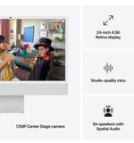 De verbluffende 24-inch Retina-display met een resolutie van 4480 x 2520 pixels dompelt je onder in levendige kleuren en haarscherpe details. Of je nu werkt, ontspant of geniet van je favoriete content, het beeldscherm van de iMac zorgt voor een meeslepende kijkervaring. De True Tone-technologie past automatisch de kleurtemperatuur aan op basis van het omgevingslicht, waardoor je altijd geniet van natuurlijke en heldere kleuren.