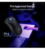 De draadloze connectiviteit van de gamingmuis zorgt voor optimale bewegingsvrijheid, zonder gedoe met snoeren die in de weg zitten. De batterij gaat lang mee en met de meegeleverde USB-C kabel laad je de muis eenvoudig en snel op tussen gaming sessies door. Zo ben je altijd klaar voor de volgende uitdaging.