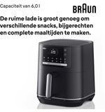 De stijlvolle zwarte afwerking van de airfryer voegt niet alleen een moderne uitstraling toe aan je keuken, maar maakt het apparaat ook tot een waar designstuk. De Braun HF5050 MultiFry 5 Airfryer biedt niet alleen de mogelijkheid om gezonde maaltijden voor te bereiden, maar draagt ook bij aan een prettige kookomgeving. Met dit veelzijdige apparaat maak je zonder moeite de meest smaakvolle gerechten. Leef je uit in de keuken en laat je inspireren om gezonde, heerlijke maaltijden te creëren met de Braun HF5050.