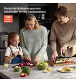 | Aanvullende functies | Originele presets | In te stellen via touchscreen | Warmhoudfunctie | Afneembare vaatwasbestendige mand | Bijgeleverde accessoires: 1 grillrek met 5 spiesjes | Geschikt voor 3-5 personen |