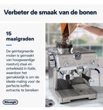 XDe De'Longhi La Specialista Opera EC9555.M is een semi-automatische espressomachine die pure kwaliteit en Italiaans vakmanschap combineert in een elegant en geavanceerd ontwerp. Deze machine is ontworpen om een gevoel van luxe en genot op te roepen, elke keer dat je van een perfect bereide kop koffie geniet. Met zijn strakke roestvrijstalen behuizing en intuïtieve bedieningselementen straalt de De'Longhi La Specialista Opera EC9555.M een tijdloze klasse uit die elke keuken verrijkt.