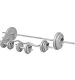 De halterset bestaat uit gietijzeren halterschijven met een totaal gewicht van maar liefst 108 kg. Deze schijven zijn duurzaam en gaan lang mee, waardoor je jarenlang plezier zult hebben van deze set. De veersluitingen zorgen ervoor dat de schijven stevig op hun plek blijven, zelfs tijdens intensieve workouts. Zo kun je je volledig concentreren op je oefeningen en het verbeteren van je prestaties.