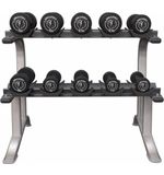 De ergonomische grip van de dumbbells zorgt ervoor dat je comfortabel kunt trainen, zelfs bij intensieve workouts. Dit voorkomt ongemak en blessures, zodat je je volledig kunt concentreren op het bereiken van je fitnessdoelen. Het stijlvolle ontwerp van de dumbells en het aantrekkelijke standaard voegt ook een esthetisch element toe aan je thuisgym. De stevige standaard houdt alles overzichtelijk en georganiseerd, waardoor je ruimte bespaart en snel kunt wisselen tussen de verschillende gewichten.