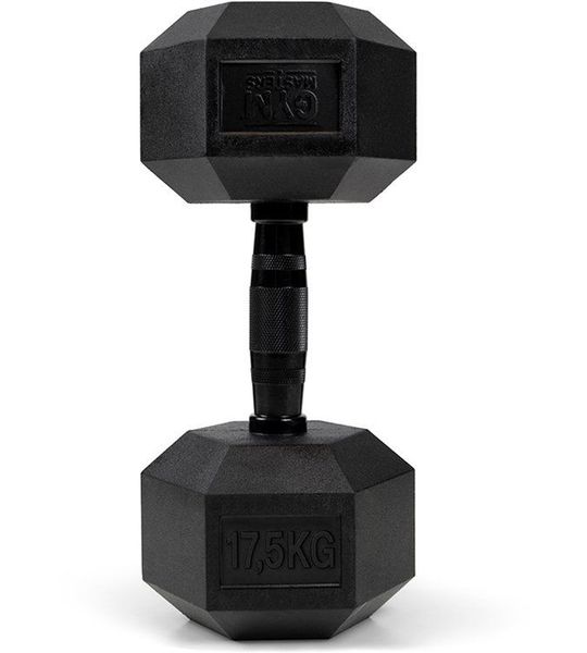 Gym Masters Dumbbell 17,5 kg – Hexagon Rubber Dumbbell – Zwart