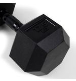 De hexagonvorm voorkomt dat de dumbbell wegrolt wanneer je deze op de grond plaatst, wat een extra veiligheidsaspect toevoegt aan je workout. Dit maakt de dumbbell perfect voor oefeningen op de grond, zoals push-ups of plankoefeningen. Het rubberen oppervlak beschermt bovendien zowel de dumbbell zelf als de vloer van je ruimte, wat bijdraagt aan de duurzaamheid van het product. Je hoeft je geen zorgen te maken over krassen of beschadigingen, waardoor je je volledig kunt richten op je training.