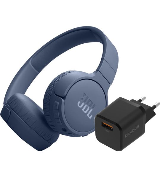 JBL Tune 670NC Blauw + BlueBuilt Quick Charge Oplader met Usb A Poort 18W Zwart