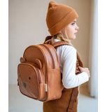 Het eerste wat opvalt aan deze rugzak is het kwaliteitsvolle design in een warme cognackleur. Het zachte kunstleer geeft een luxueuze uitstraling, terwijl de schattige beerapplicatie voor een speels karakter zorgt. Het geheel straalt duurzaamheid en stijl uit, perfect voor de jonge avonturier die in alle comfort op pad wil gaan.