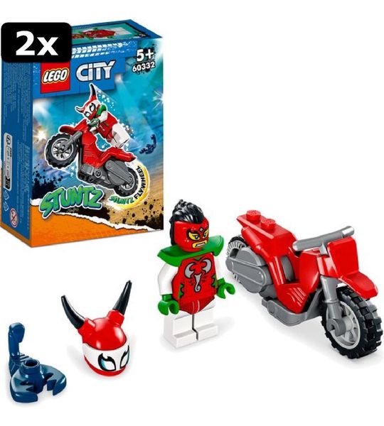 De 2x LEGO City Stuntz Roekeloze Scorpion stuntmotor - 60332 is een geweldige aanvulling op jouw LEGO City collectie. Bouw je eigen stuntshows en organiseer spannende races met je vrienden. Deze set is geschikt voor kinderen vanaf 6 jaar en is zorgvuldig ontworpen om aan de hoogste kwaliteitsnormen te voldoen.