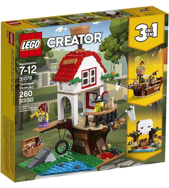De LEGO Creator Boomhutschatten - 31078 is perfect voor kinderen die van bouwen en spelen houden. Met drie verschillende bouwopties kun je keer op keer een ander avontuur beleven. Bouw een uitdagende boomhut met geheime passages en een schatkist, of transformeer het model tot een piratenschip waarop je de zeven zeeën kunt verkennen. Als je eenmaal klaar bent met je piratenavontuur, tover je het bouwpakket om tot een schattig eiland met een verborgen grot en een schatkaart om nieuwe avonturen te beleven.