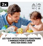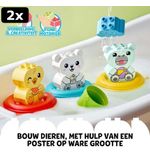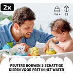 Stap in de wereld van avontuur en speelplezier met de LEGO DUPLO Mijn eerste pret in bad: Drijvende Dierentrein - 10965. De kleurrijke dieren, het drijvende treintje en de mogelijkheden voor creatief spel zorgen ervoor dat kinderen zich eindeloos kunnen vermaken in het water. Duik in de fantasiewereld van jonge bouwers en laat ze genieten van een bad vol avontuur!