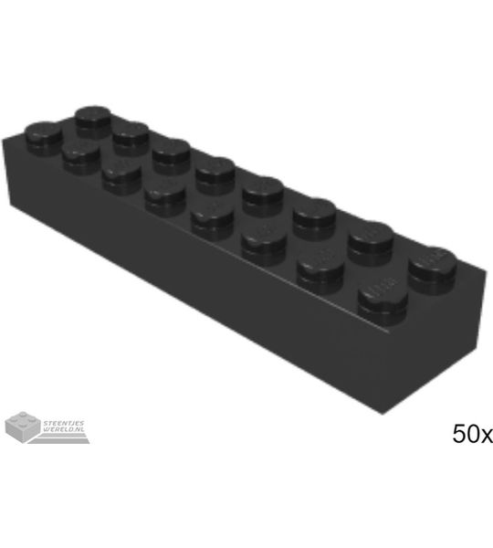 50x LEGO 3007 Steen 2x8 Zwart, 50 stuks