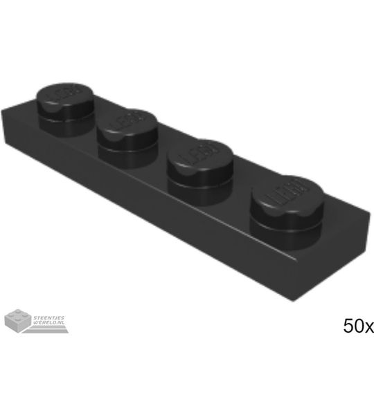 50x LEGO 3710 Plaat 1x4 Zwart, 50 stuks