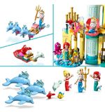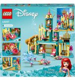 Het eerste wat opvalt aan dit LEGO bouwpakket is de prachtige weergave van Ariël's Onderwaterpaleis. Met de levendige kleuren en details komen de scènes uit de Disney film echt tot leven. De set bevat niet alleen het paleis zelf, maar ook verschillende minipoppetjes waarmee je het verhaal kunt naspelen. Ariël, haar vriend Botje, haar trouwe metgezel Sebastiaan en zelfs de gemene Ursula zijn allemaal aanwezig. Samen kunnen ze de onderwaterwereld verkennen en spannende avonturen beleven.