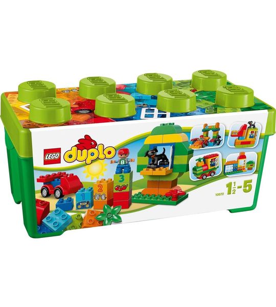 Met de LEGO DUPLO Alles-in-één Doos - 10572 kunnen kinderen hun fantasie de vrije loop laten en eindeloos bouwen, creëren en spelen. Deze set zit boordevol kleurrijke blokken en accessoires, waarmee je kind zijn of haar eigen avonturen kan bedenken. Of het nu gaat om het bouwen van een huis, het maken van een voertuig of het verzorgen van dieren, met deze doos kunnen de mogelijkheden oneindig zijn.