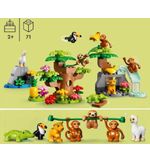 Met de LEGO DUPLO Wilde dieren van Zuid-Amerika set worden jonge ontdekkingsreizigers aangemoedigd om hun fantasie te gebruiken terwijl ze spelen en leren. De set bevat vier schattige dierenfiguren, namelijk een jaguar, een aap, een krokodil en een toekan, die stuk voor stuk zijn ontworpen om gemakkelijk vast te kunnen houden en te bouwen met de grote DUPLO stenen. Dit zorgt voor urenlang speelplezier en stimuleert de fijne motoriek en hand-oog coördinatie van kleine kindjes.