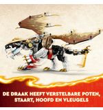Met zijn beweegbare ledematen, verstelbare vleugels en het enorme zwaard dat hij draagt, is Egalt de Meesterdraak een geduchte tegenstander voor iedereen die hem durft te trotseren. Neem plaats op zijn rug en vlieg naar de LEGO NINJAGO wereld om de Ninja's te helpen in hun strijd tegen het kwaad. Met deze set kunnen kinderen hun eigen avonturen bedenken en zich helemaal onderdompelen in de spannende wereld van LEGO NINJAGO.