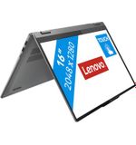 Het 2-in-1 ontwerp van de Lenovo IdeaPad 5 biedt veelzijdigheid en flexibiliteit, waardoor je moeiteloos kunt schakelen tussen laptop- en tabletmodus. Of je nu onderweg bent en snel iets wilt noteren in tabletmodus, of ontspannen wilt browsen op het grotere scherm in laptopmodus, deze laptop past zich moeiteloos aan jouw behoeften aan.