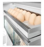 Bij het openen van de deur zul je een prachtig, goed ingedeeld interieur ontdekken. De ruime indeling biedt voldoende ruimte voor al je boodschappen, van verse groenten en fruit tot je favoriete snacks en dranken. De glazen plateaus zijn niet alleen stevig, maar ook gemakkelijk schoon te maken. Dit zorgt ervoor dat je koelkast altijd een frisse uitstraling behoudt. Het eenvoudig aanpasbare interieur stelt je in staat om de indeling naar wens aan te passen, zodat je al je producten efficiënter kunt bewaren.