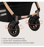 De Lionelo Amber Black Onyx is ontworpen met oog voor detail en vakmanschap. Het zwarte frame in combinatie met de stijlvolle onyx details zorgen voor een luxe uitstraling die iedereen zal aanspreken. Of je nu een wandeling in het park maakt of boodschappen doet in de stad, met deze kinderwagen steel je gegarandeerd de show.