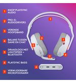 De draadloze verbinding met LIGHTSPEED-technologie verzekert je van een betrouwbare, responsieve gameplay zonder enige vertraging. Sluit de headset aan op je pc, PlayStation of Xbox en ervaar de vrijheid van draadloos gamen. De bluetooth-functionaliteit voegt extra veelzijdigheid toe, zodat je moeiteloos kunt schakelen tussen verschillende apparaten en ook kunt genieten van muziek of gesprekken tijdens je game-ervaring.