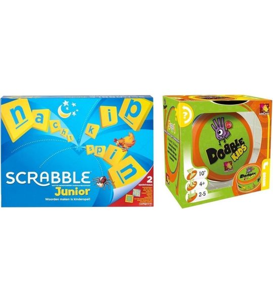 Kies voor deze Spellenbundel - 2 Stuks - Mattel Scrabble Junior & Dobble Kids en geef je kinderen de kans om spelenderwijs te leren, terwijl ze genieten van gezellige speelmomenten met vrienden en familie. Deze spellen zorgen niet alleen voor veel plezier, maar dragen ook bij aan de ontwikkeling van belangrijke vaardigheden. Bestel ze vandaag nog en laat de spelletjesavonden beginnen!