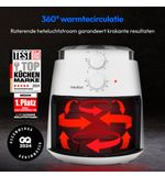 De krachtige 1500 watt motor zorgt ervoor dat de warmeluchtcirculatie optimaal is, waardoor je ingrediënten gelijkmatig worden gegaard. Dit betekent dat je kunt genieten van een heerlijke, krokante buitenkant en een sappige binnenkant, allemaal met veel minder olie dan bij traditionele bereidingswijzen. De MEDION Airfryer P30 maakt het gemakkelijker dan ooit om gezonder te koken, zonder in te boeten op smaak of textuur. Met de intuïtieve timer van 60 minuten kun je precies instellen hoe lang je gerechten moeten garen, zodat je nooit meer het risico loopt dat je maaltijd te lang of te kort wordt gekookt.