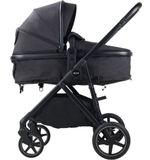 Het strakke en eigentijdse ontwerp van de Novi Baby® Jaxx kinderwagen in de kleur Black Melange straalt elegantie uit en trekt ongetwijfeld de aandacht. De combinatie van het zwarte frame en de melange stof geeft de kinderwagen een chique uitstraling die perfect past bij moderne ouders met oog voor design.