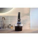 Visualiseer de luxe van een premium product met zorgvuldig geselecteerde materialen en een esthetisch ontwerp dat je in je badkamer wilt tentoonstellen. De gebruiksvriendelijke interface met een helder display houdt je op de hoogte van de batterijstatus en stelt je in staat om de instellingen eenvoudig aan te passen. Na gebruik is de i9000 eenvoudig te reinigen; met één druk op de knop spoel je de scheerkoppen af onder stromend water, waardoor onderhoud tot een minimum wordt beperkt.