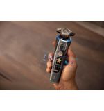 De ergonomische vormgeving van de i9000 Prestige zorgt ervoor dat het apparaat moeiteloos in de hand ligt. Het biedt optimale controle, waardoor elk contour moeiteloos kan worden gevolgd. De combinatie van de flexibele scheerkoppen en de krachtige motor zorgt ervoor dat je zelfs de lastigste plekken, zoals de kaaklijn en de hals, eenvoudig kunt bereiken. Of je nu kiest voor een droge scheerbeurt of het verfrissende gevoel van nat scheren met scheerschuim of gel doet je huid altijd goed.