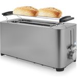 De Princess 142402 Broodrooster is voorzien van twee extra brede broodsleuven, waardoor je moeiteloos diverse soorten brood kunt roosteren, of het nu om een sneetje ambachtelijk brood of een bagel gaat. Het handige opwarmrekje biedt je de mogelijkheid om croissants of broodjes eenvoudig op te warmen, zodat je iedere dag kunt genieten van versgebakken lekkernijen.