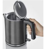De ergonomische handgreep van de waterkoker biedt een comfortabele grip, waardoor het bijvullen en inschenken moeiteloos gaat. Het extra veiligheidsmechanisme zorgt ervoor dat de waterkoker automatisch uitschakelt als het water kookt, wat gemoedsrust biedt terwijl je je in de keuken bezighoudt met andere taken. Dit aspect van gebruiksgemak wordt nog verder versterkt door de draaibare voet, waardoor je de waterkoker vanuit elke positie kunt oppakken en terugzetten.