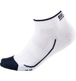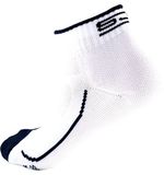 De witte kleur van de sokken straalt frisheid en elegantie uit, waardoor je zelfvertrouwen en stijl krijgt terwijl je op de tennisbaan beweegt. Het subtiele Sjeng Sports logo op de sokken voegt een vleugje sportieve stijl toe, waardoor je outfit er zowel trendy als professioneel uitziet.