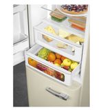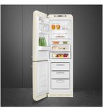 XDe Smeg FAB32LCR6 koel-vriescombinatie in een prachtige crèmekleurige uitvoering brengt niet alleen praktische functionaliteit in uw keuken, maar ook een vleugje retro charme. Dit iconische apparaat, met zijn opvallende design, is een ware eyecatcher die de esthetiek van uw interieur compleet kan maken. Het biedt de perfecte combinatie van modern gemak en klassiek Italiaans ontwerp, waardoor het niet alleen een koelkast is, maar ook een statement piece in uw huis.