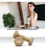 Sporten met deze halterset voelt krachtig en motiverend. De opvallende kleurencombinatie van roze, paars en koffie geeft een speelse uitstraling, waardoor het trainen niet alleen functioneel maar ook leuk wordt. De halters zijn ontworpen om een stevig en comfortabel grip te bieden, zelfs tijdens intensieve trainingssessies. Dit helpt niet alleen om blessures te voorkomen, maar draagt ook bij aan een efficiëntere krachttraining.
