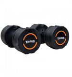 Deze Taurus Selectabell halters bieden een ongeëvenaarde veelzijdigheid. Met een eenvoudige draai aan de knop kun je het gewicht in een mum van tijd aanpassen, variërend van 2,2 kg tot 11,3 kg. Geen gedoe meer met meerdere dumbbells die ruimte innemen in je home gym. Deze halters combineren het gemak van een compact ontwerp met de efficiëntie van een complete set gewichten.