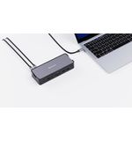Dankzij de aanwezigheid van diverse poorten op het dockingstation ben je altijd verbonden en voorzien van alle benodigde aansluitingen. Van USB-poorten tot HDMI- en Ethernet-ingangen, dit dockingstation biedt de connectiviteit die jouw digitale leven vereenvoudigt en verrijkt. Werk efficiënter, geniet van multimedia in de hoogst mogelijke kwaliteit en wees altijd online zonder gedoe.