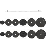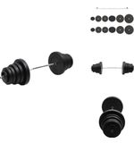 XMet de vidaXL Halterset met Gewichten van 90 kg in zwart til je jouw training naar een hoger niveau. Deze complete halterset is de perfecte keuze voor zowel beginners als ervaren sporters die hun krachttraining effectief willen verbeteren. De robuuste gewichten in een strakke, zwarte uitvoering geven niet alleen een professionele uitstraling, maar zijn ook ontworpen voor langdurig gebruik.