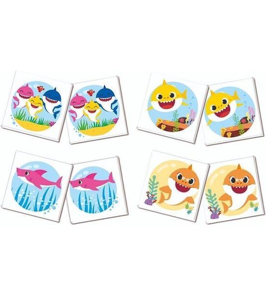 Het spel bestaat uit 48 stevige kaartjes met kleurrijke afbeeldingen van de geliefde Baby Shark karakters. Het doel van het spel is om de meeste juiste paren te vinden door middel van het omdraaien van de kaartjes. Dit zorgt niet alleen voor plezier en entertainment, maar stimuleert ook het geheugen en de concentratie van je kind.