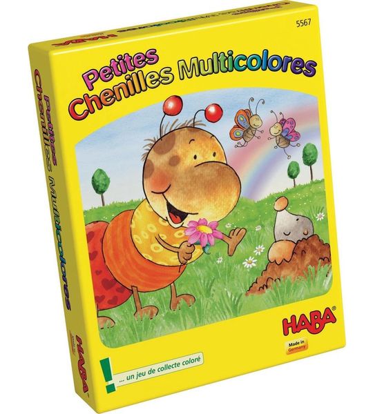 Het spel bestaat uit een speelbord, houten rupsjes in verschillende kleuren en een dobbelsteen met symbolen. Het doel van het spel is om met je rupsje als eerste de regenboog te bereiken. Dit doe je door de dobbelsteen te gooien en het aantal ogen te vergeleken met het symbool op het speelbord. Vervolgens mag je jouw rupsje vooruit bewegen.