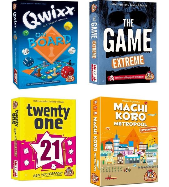 Laat je meeslepen in een wereld vol spelplezier met de Bordspel set 4 spellen. Deze set bevat vier spannende en uitdagende spellen: Qwixx, The Game Extreme, Twenty One en Machi Koro Metropool. Of je nu een doorgewinterde bordspelfanaat bent of net begint met je bordspelavontuur, deze set is een geweldige toevoeging aan je collectie. Laat je verbeelding de vrije loop en geniet van urenlang speelplezier met vrienden en familie!