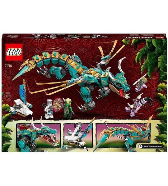 De LEGO 71746 NINJAGO jungledraak bouwset neemt je mee naar een weelderige jungle waar Ninja Lloyd en Zane de strijd aangaan tegen gevaarlijke vijanden. Met behulp van hun minifiguren kunnen kinderen hun favoriete scènes uit de NINJAGO tv-serie naspelen of hun eigen avonturen bedenken.