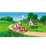 Stap voor stap kunnen kinderen de koets in elkaar zetten en ontdekken hoe de prachtige details tot leven komen. De elegant vormgegeven koets is voorzien van gouden accenten, sierlijke wielen en een opening aan de achterkant, waar Aurora in kan plaatsnemen. Met de magische toverstaf kunnen kinderen Aurora's koets laten rijden en haar naar verre en betoverende bestemmingen brengen.