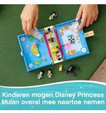 Het hoogtepunt van deze set is ongetwijfeld de prachtige Mulan minipoppetjes. Met haar iconische jurk en zwaard is Mulan klaar voor avontuur. Naast Mulan bevat de set ook minipoppetjes van Li Shang, Khan (Mulan's trouwe paard) en Cri-Kee (de grappige krekel). Met deze personages kunnen kinderen hun favoriete scènes uit de film naspelen of hun eigen verhalen bedenken. De set bevat ook accessoires zoals een theetafel, een kist en een vogelkooi om de speelervaring nog meer uitgebreid en realistisch te maken.