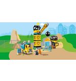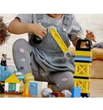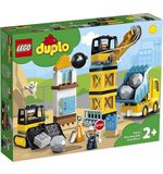 Deze bouwset bevat 56 stevige LEGO Duplo stenen, waaronder een kraan, een sloopkogel, een vrachtwagen en twee figuurtjes. Kinderen kunnen de kraan bedienen, de sloopkogel laten slingeren en de vrachtwagen vullen met bouwmaterialen. Door de stenen op verschillende manieren te combineren en te stapelen, kunnen ze hun eigen bouwwerken creëren en de bouwplaats tot leven brengen.