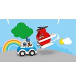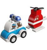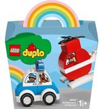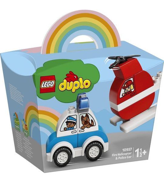 De LEGO DUPLO Brandweerhelikopter en Politiewagen - 10957 bestaat uit 20 kleurrijke en stevige DUPLO blokken, speciaal ontworpen voor kleine handjes. Het bouwen van de brandweerhelikopter en politiewagen is eenvoudig en stimuleert de fijne motoriek van uw kind. Zodra de voertuigen zijn gebouwd, kan het avontuur beginnen!
