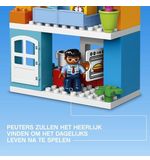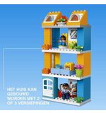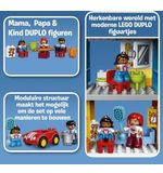 Het LEGO DUPLO Familiehuis bestaat uit twee verdiepingen en is voorzien van een volledig uitgeruste keuken, een gezellige woonkamer, een knusse slaapkamer en een badkamer. Het huis is versierd met heldere en vrolijke kleuren, wat zorgt voor een aangename sfeer waarin de verbeelding van kinderen tot leven kan komen.