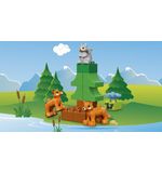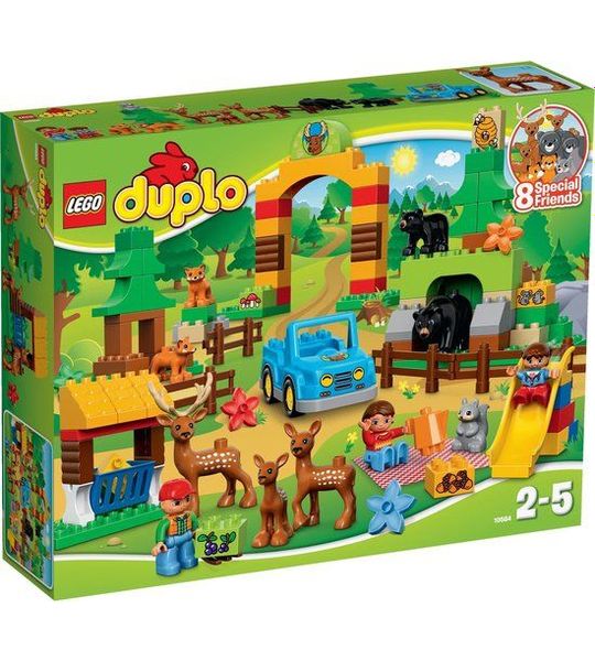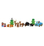 Het Grote Bos biedt een scala aan activiteiten en speelmogelijkheden. Het avontuur begint zodra de kleurrijke DUPLO-steen wordt opgetild. Kinderen kunnen de houten brug over het kabbelende beekje laten lopen, de schattige dieren observeren, de boomhut beklimmen en van de glijbaan naar beneden suizen. Er is zelfs een boom die omhoog kan worden getakeld met behulp van de draaibare kraan! Dit alles helpt kinderen om hun motorische vaardigheden te ontwikkelen en hun creativiteit te stimuleren.